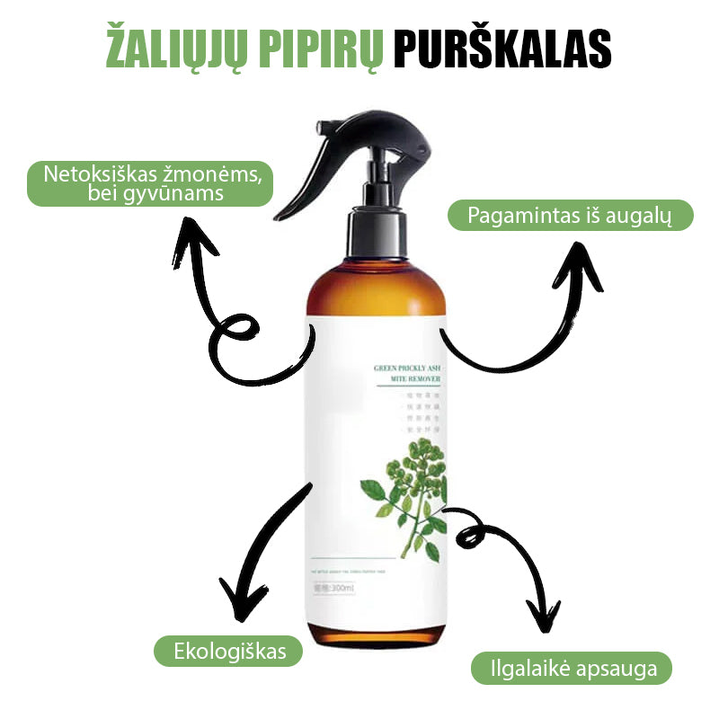 Žaliųjų pipirų purškalas nuo dulkių erkučių